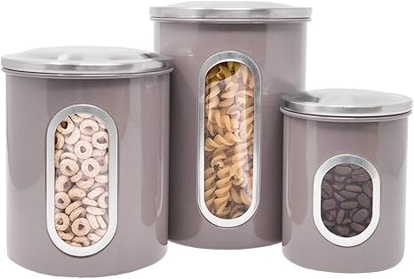 Set Of 3 Barnyard Designs Decorative Kitchen Canisters With Lids Mint Metal Rustic Vintage Farmhouse Country Decor For Sugar Coffee Tea Storage 4 X 6 75 Bulk Food Storage Food Bins Canisters from images-na.ssl-images-amazon.com The new megachef essential kitchen storage canister set in matte gray is a stunning addition to any kitchen. I use them for flour, sugar, coffee, fried foods, and even have larger ones for storing boxes of cereal by the bulk. White embossed kitchen canister set 4 piece. What goes with red in the kitchen? In this video i discuss our experience with these kitchen canisters and how great they have been for us. This canister set is the best for everyday use in the home, with four pieces in each set. There are 2519 3 kitchen canisters for sale on etsy, and they cost $45.74 on average. Cc manager, download basket, infinite scrolling and more!